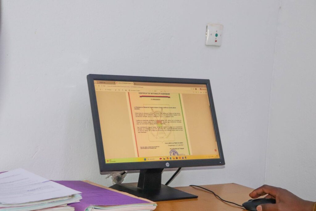 Les greffiers) vont procéder à « une vérification de conformité entre les renseignements fournis et les documents qui sont produits en appui. Si la conformité est établie, il valide le traitement et envoi au juge signataire et au président du tribunal qui a un droit de regard sur l’ensemble de la plateforme. Le juge à son tour essaye de regarder si toutes les informations sont renseignées, si les pièces sont effectivement fournies. (…) Une fois que tout est bon, il valide la demande. A partir de cette validation, la demande est signée puis envoyée directement dans la boîte-mail (ou sur le numéro WhatsApp) du requérant », a décrit l’agent-traitant des services e-certificat de nationalité burkinabè.