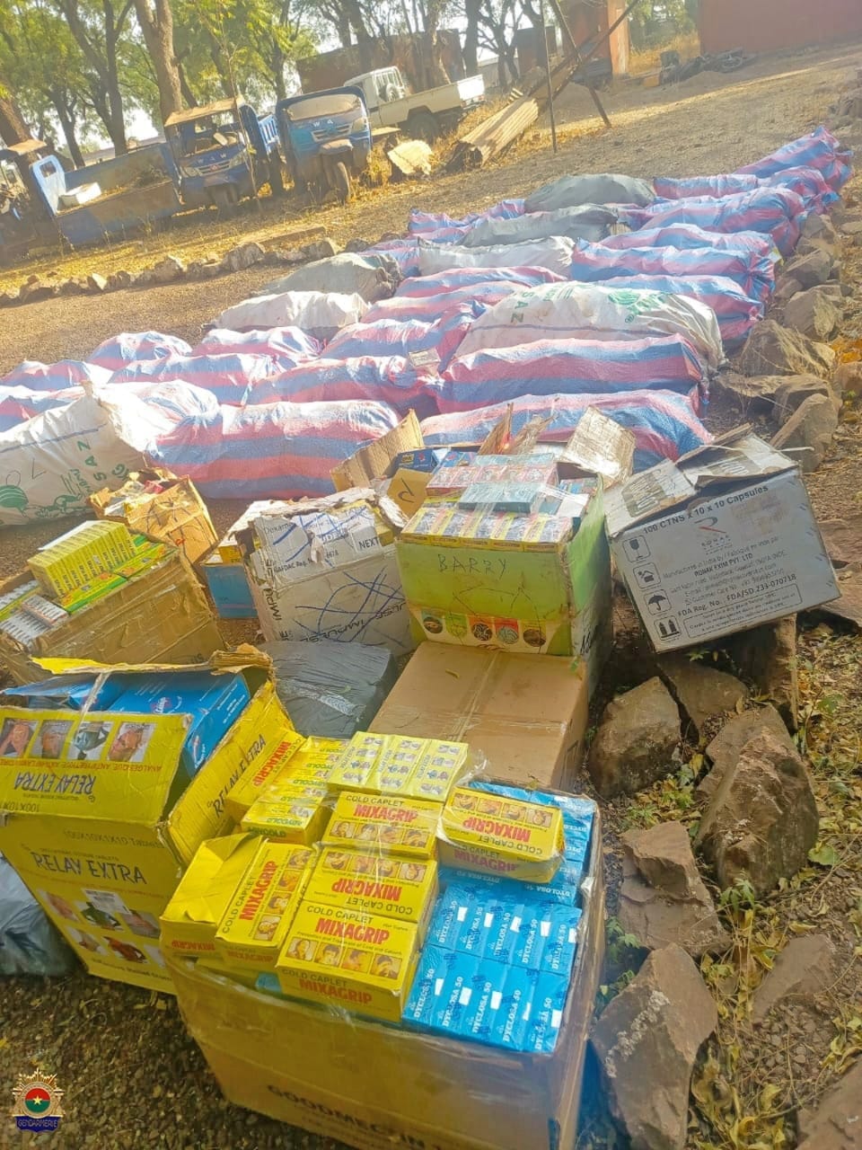 Suite à l’exploitation efficace de renseignements, les gendarmes ont conduit une opération d’envergure au marché de Diara, situé dans la région du Nakambé. Le 9 février 2026, une mission de reconnaissance a permis d’identifier quatre entrepôts suspectés d’abriter des marchandises prohibées. Sur instruction du Procureur du Faso près le Tribunal de Grande Instance de Tenkodogo, une opération de bouclage suivie de perquisitions a été exécutée le 12 février 2026.