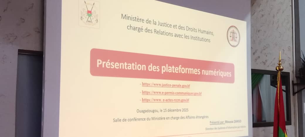 Le ministère burkinabè en charge de la Justice, a procédé, le lundi 15 décembre 2025, à Ouagadougou, au lancement officiel de trois nouvelles plateformes numériques pour redynamiser davantage l’Administration judiciaire et rapprocher les services des citoyens. Prénommés « e-justice-pénale; e-permis-communiquer et e-rccm (Registre du Commerce et du Crédit et Mobilier,). Ces trois canaux ont pour objet d’apporter « une avancée majeure dans la modernisation de notre administration judiciaire », a déclaré le Premier ministre, Rimtalba Jean Emmanuel Ouédraogo.