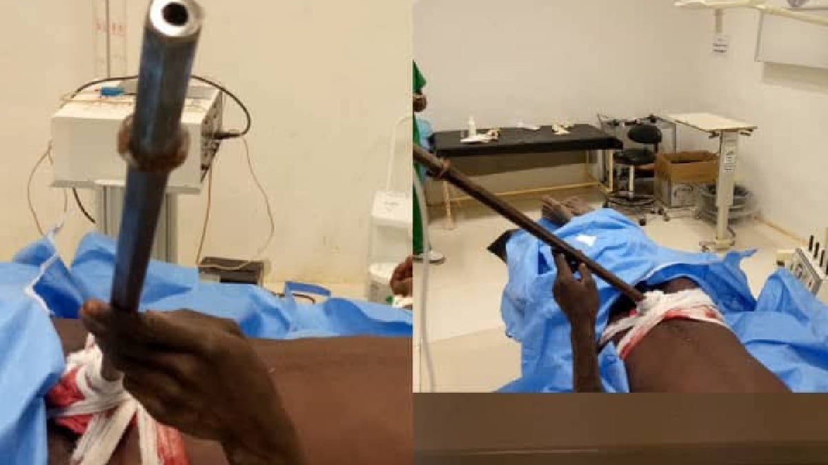 Une barre en acier issue d’un système de forage minier a été extraite avec succès du corps d’un jeune orpailleur, après qu’elle ait traversé la zone pubienne pour se loger dans le muscle fessier.