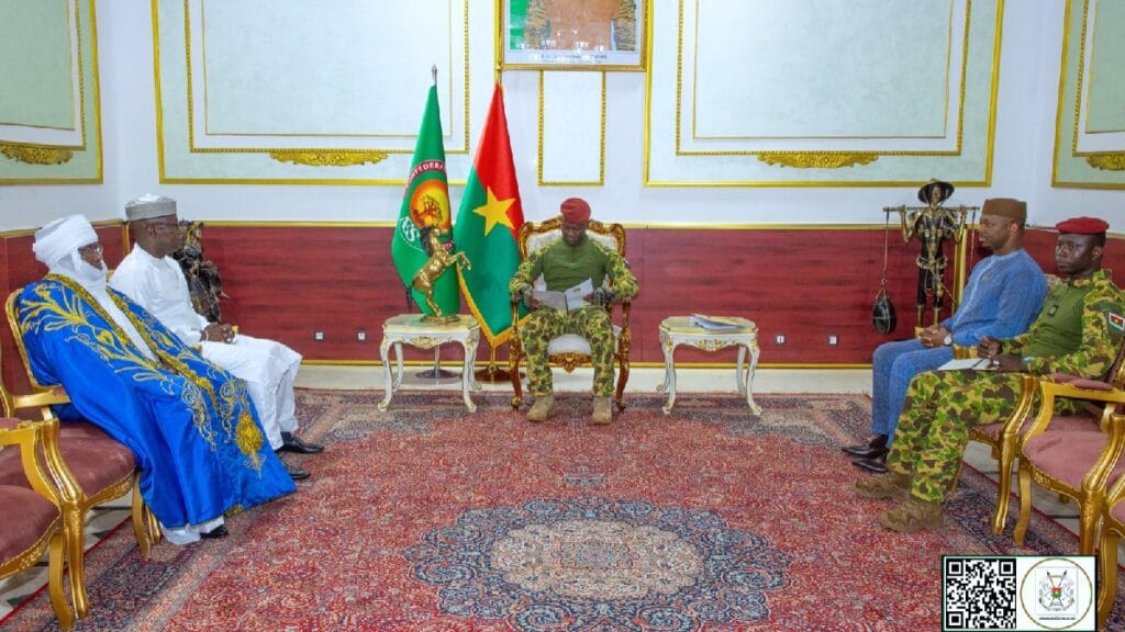 (Ouagadougou, le 19 septembre 2025). Le Président du Faso, Chef de l’État, le Capitaine Ibrahim TRAORÉ a reçu en audience, ce vendredi, les présidents des parlements du Mali et du Niger conduits par leur homologue du Burkina Faso, Dr Ousmane BOUGOUMA, président de l’Assemblée législative de transition (ALT).