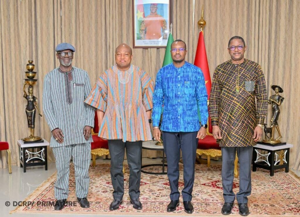 Le Premier ministre, Rimtalba Jean Emmanuel Ouédraogo, a accordé une audience à une délégation de la République du Ghana conduite par son ministre des Affaires étrangères, S.E.M. Samuel Okudzeto Ablakwa. La délégation incluant l’envoyé spécial du Ghana pour l’AES a été introduite auprès du Chef du Gouvernement par le ministre burkinabè en charge des Affaires étrangères, S.E.M. Karamoko Jean Marie Traoré. Les échanges ont porté sur le renforcement de la coopération bilatérale, à la faveur de la 13ᵉ session de la Grande Commission mixte de coopération, cadre privilégié de concertation et de suivi des engagements communs.