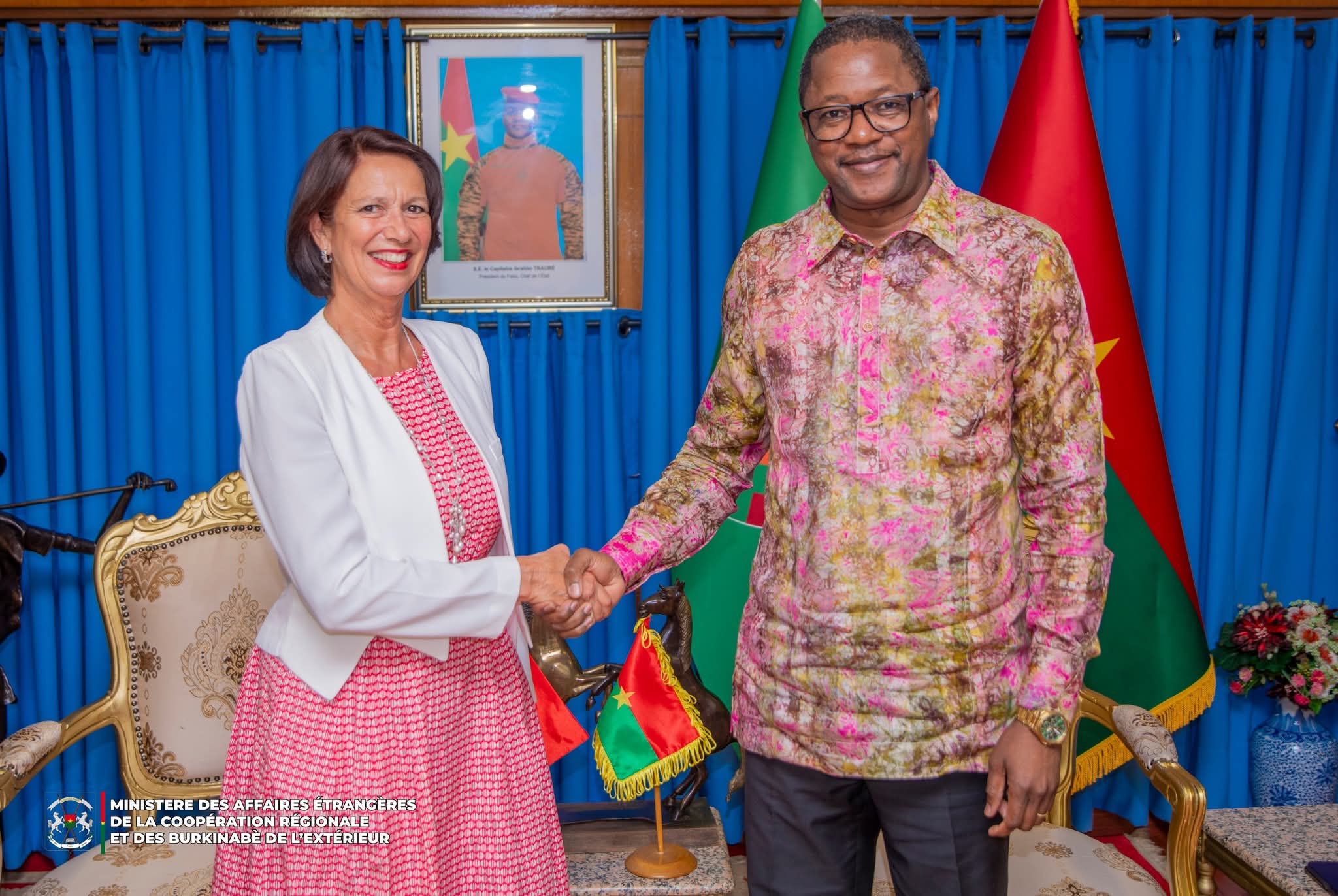 Le ministre des Affaires étrangères, de la Coopération régionale et de Burkinabè de l’Extérieur, SEM Karamoko Jean Marie TRAORE a reçu en audience, dans la soirée du mercredi 23 juillet 2025, madame Christine Schraner BURGENER, la candidate officielle de la Suisse au poste de Haut-Commissaire des Nations Unis pour les Réfugiés.