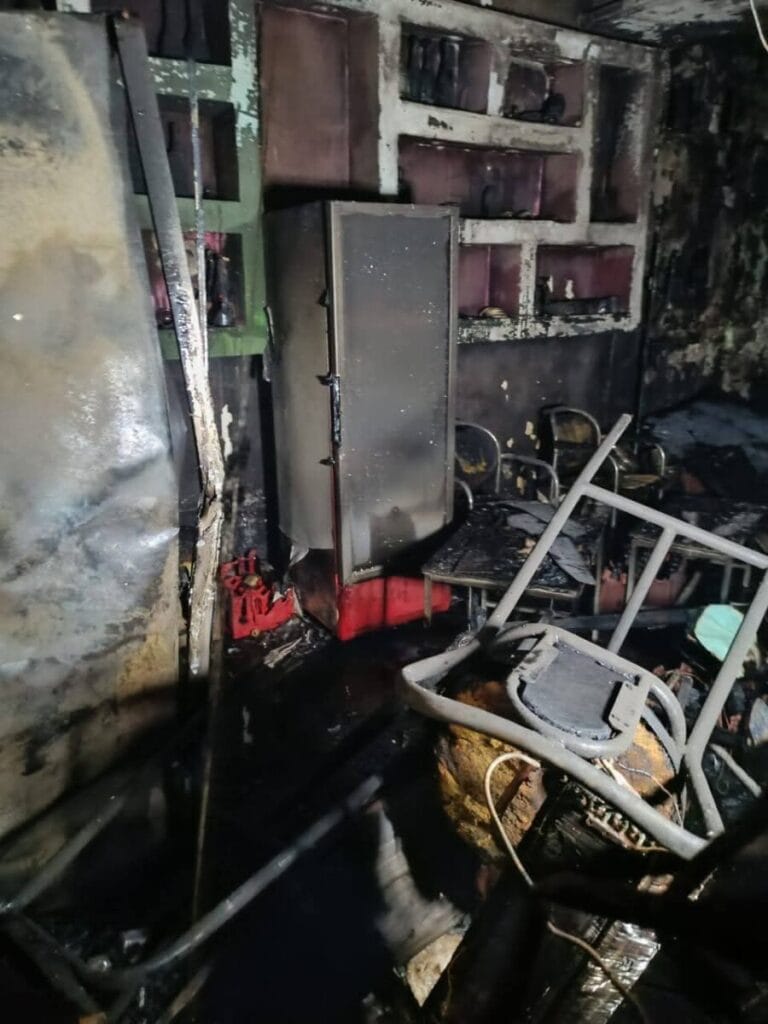 Arrivés promptement sur les lieux, les Soldats du feu, « ont pu empêcher la propagation du feu vers les locaux voisins et procéder à son extinction. On ne déplore aucune perte en vie humaine mais les dégâts matériels sont importants », ajoute la note.