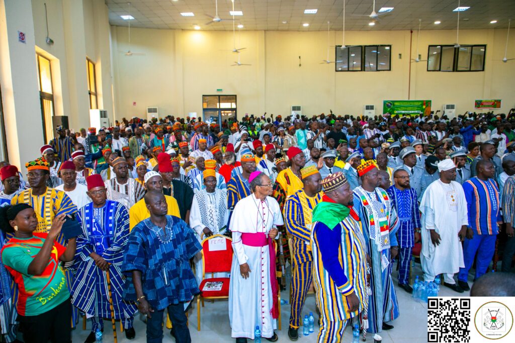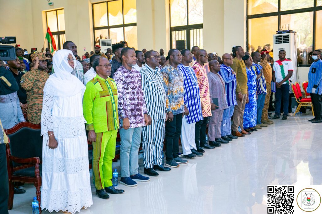 Dans une salle polyvalente de Manga archi-comble pour l’occasion, l’hymne national, le Ditanyè est entonné à l’unisson par l’ensemble des participants.