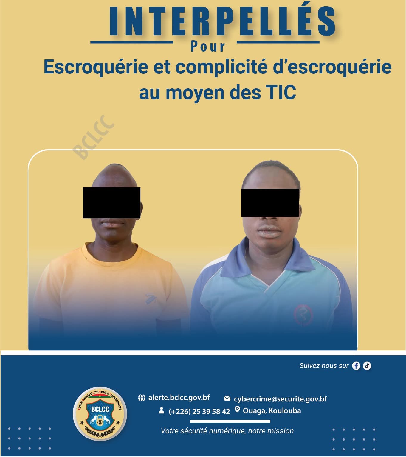 Dans le cadre de ses missions de protection des personnes et de leurs biens dans le cyberespace burkinabè, la Brigade Centrale de Lutte Contre la Cybercriminalité (BCLCC) a interpellé un groupe de présumés cyberdélinquants pour des faits d’escroquerie via les Technologies de l’Information et de la Communication (TIC).