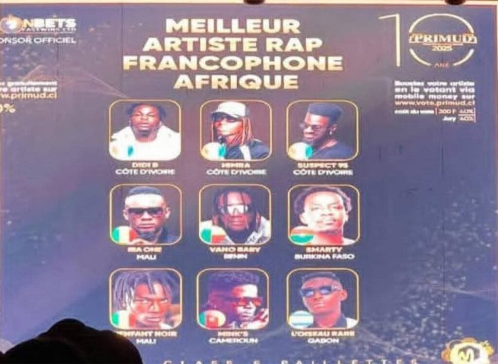 Pour information, le Prix international des musiques urbaines et du coupé décalé (PRIMUD) est décerné annuellement à des professionnels du monde de la musique sur le territoire ivoirien et en Afrique.
