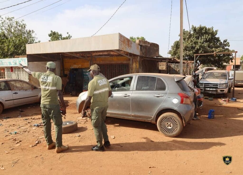 La Police Municipale de Ouagadougou a multiplié les interventions le 14 novembre 2025 pour améliorer l’hygiène et la fluidité urbaine. La Direction de la Sécurité Publique a mené une opération de lutte contre les encombrements de la voie publique occasionnés par les garagistes et les épaves de véhicules laissées sur le domaine public.
