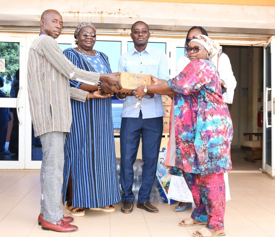 À l’occasion de son 50ᵉ anniversaire, célébré en ce mois de novembre 2025, Madame SAWADOGO/YONLI Possibo, sage-femme en service au Centre hospitalier universitaire pédiatrique Charles de Gaulle (CHUP-CDG), a posé un geste de solidarité en faisant un don au profit des enfants atteints de cancer pris en charge au sein de l’établissement. La remise du don, composé de cartons de savon, de produits d’hygiène, de couvertures, de packs d’eau et de médicaments anticancéreux, a eu lieu le lundi 17 novembre 2025, en présence du Directeur général du CHUP-CDG, Monsieur Issa ILBOUDO.