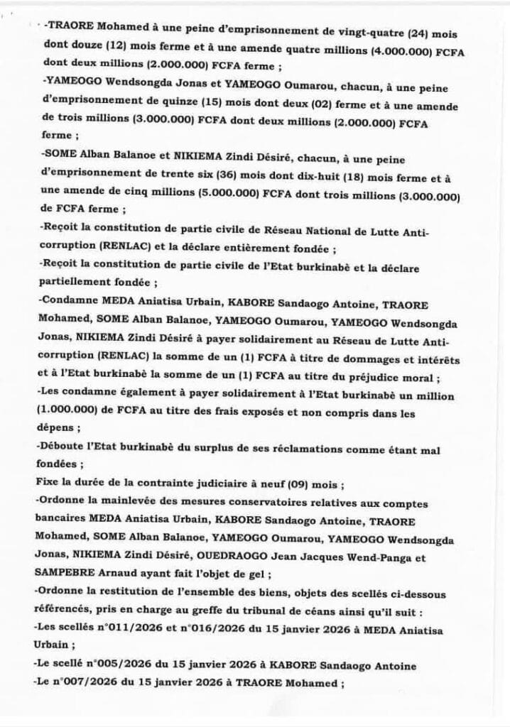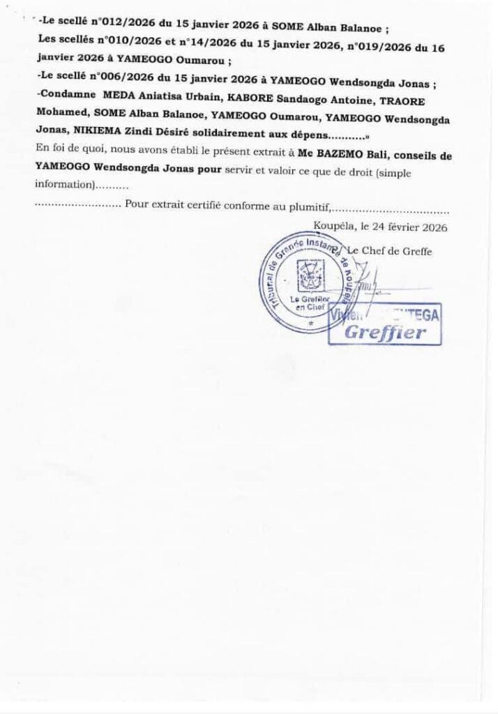 Voici le verdict extrait du plumitif du greffe du TGI de Koupela