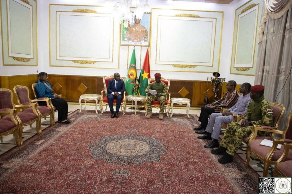 (Ouagadougou, 26 juin 2025). Le Président du Faso, Chef de l’État, le Capitaine Ibrahim TRAORÉ, a reçu ce jeudi, les lettres de créance de Son Excellence Monsieur Fabrice BOUSSOUGOU BOUSSOUGOU, Ambassadeur extraordinaire et plénipotentiaire de la République gabonaise auprès du Burkina Faso avec résidence Abidjan.