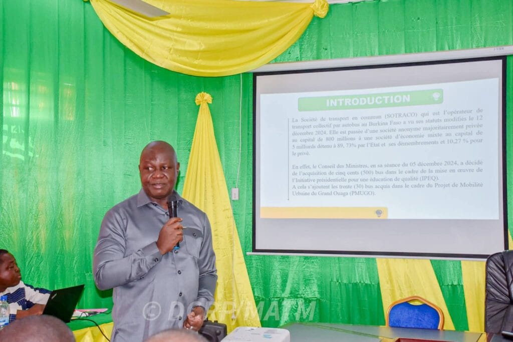 Le Secrétaire Général de la région du Nakambé, Sayouba Sawadogo, représentant le Gouverneur, a présidé, le jeudi 20 novembre 2025, à Tenkodogo, dans la région du Nakambé, l’atelier de validation des lignes du nouveau réseau de bus de la Société de Transport en Commun (SOTRACO) de la ville de Tenkodogo. Il avait à ses côtés le Directeur Général de la SOTRACO, Drissa Sawadogo.