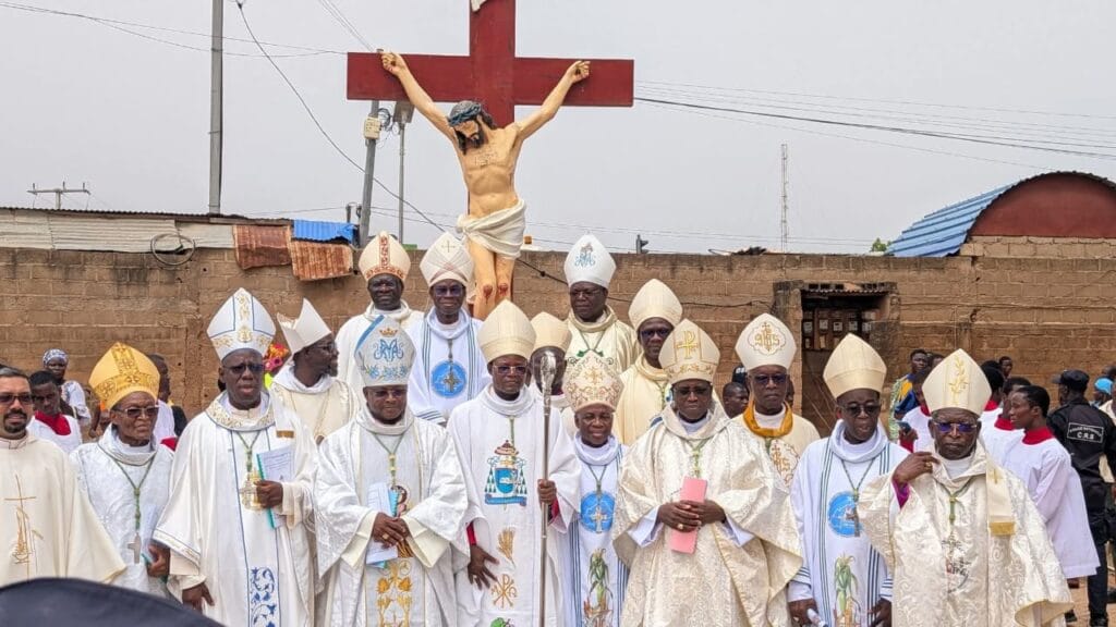 Le Ministre de la Communication de la Culture des Arts et du Tourisme Pingdwendé Gilbert OUEDRAOGO a pris part à la cérémonie d’intronisation du nouvel evêque de Tenkodogo ce samedi 24 mai 2025 à la paroisse cathédrale Saint François Xavier de Tenkodogo dans la région du Centre-Est.