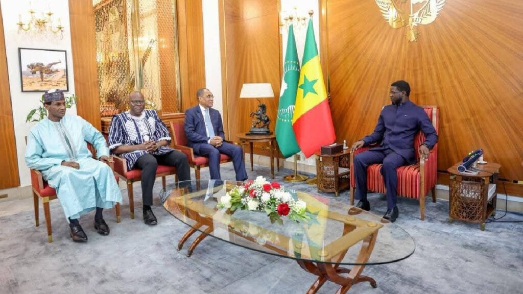 Ouagadougou, le 07 octobre 2025). En marge des travaux des ministres de l’Union Économique et Monétaire Ouest Africaine (UEMOA) tenus ce 6 octobre 2025 à Dakar, le Président de la République du Sénégal, Son Excellence Bassirou Diomaye FAYE, a reçu les ministres de l’Union pour échanger sur les avancées de l’Union et sur les perspectives de renforcement de la coordination des politiques économiques au bénéfice des populations.