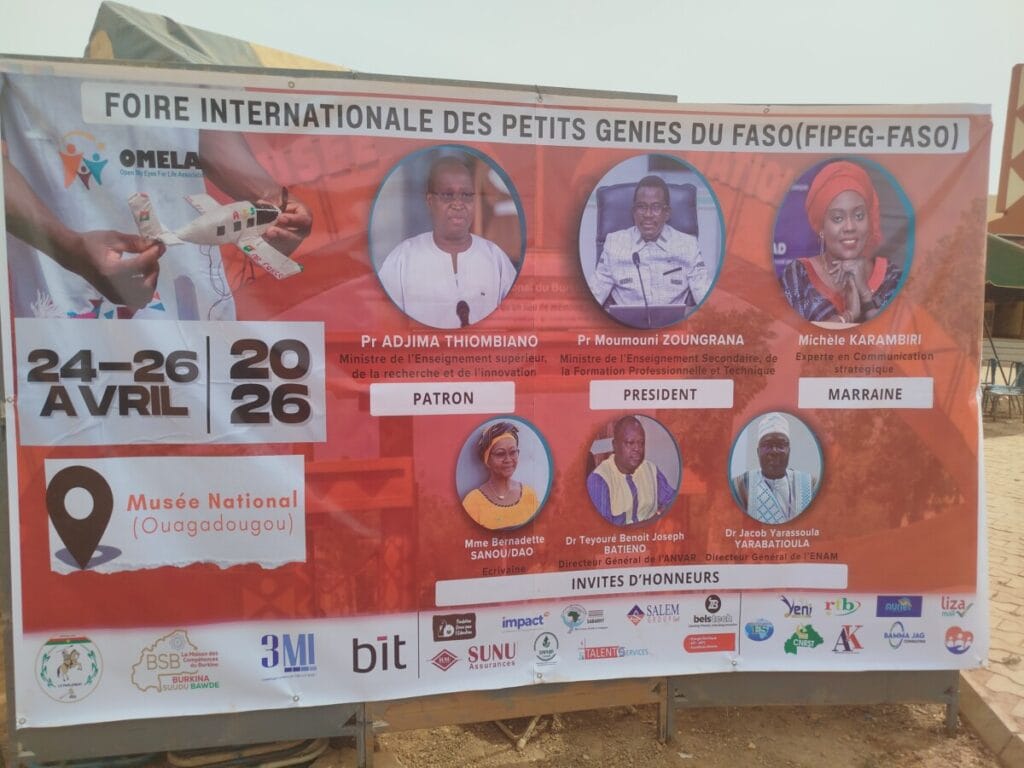 Les autorités burkinabè des Enseignements supérieur et secondaire, ont ouvert officiellement, les activités de la deuxième édition de la Foire Internationale des Petits Génies du Faso (FIPEG-FASO), le vendredi 24 avril 2026, au Musée national à Ouagadougou. L’exposition visant à stimuler les œuvres des jeunes créateurs se tient cette année sous le thème: « Ingéniosité des enfants et jeunes : une génération-solution au service d’un développement endogène et durable ».